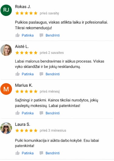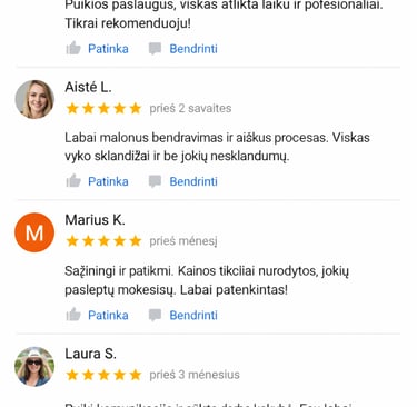 Mums labai svarbus Jūsų pasitikėjimas, todėl kviečiame pasidalinti savo patirtimi ir palikti atsiliepimą.
